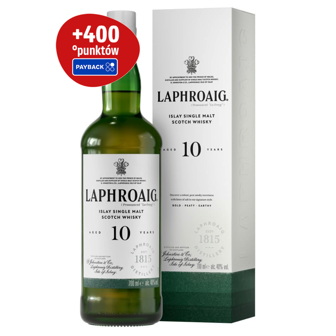 Destylarnia Laphroaig produkuje whisky od 1815 roku i jest liderem sprzedaży na wyspie Islay, gdzie sprzedano 3,7 mln butelek w 2021 roku. Obecnie należy do koncernu Beam Suntory i posiada siedem alembików, które rocznie produkują 3,3 mln litrów destylatu. Laphroaig wytwarza swoje własne słody, ale tylko 15% zapotrzebowania pokrywa własna słodownia, resztę dostarcza Port Ellen Maltings. Laphroaig 10yo dojrzewa w beczkach po bourbonie i jest częścią podstawowej oferty firmy od wielu lat, praktycznie co roku zdobywa jakąś prestiżową nagrodę. Ostatnio została nagrodzona podwójnym złotym medalem przez jury World Spirits Competition w 2022 roku. W tym samym roku firma wprowadziła minimalistyczne wzory etykiet. Aromat whisky Laphroaig 10yo to torfowy dym, jodyna, przypalona trawa, kropla smoły, budyń waniliowy, karmel, skórka cytrynowa, wędzone owoce morza, biały pieprz, zwęglony dąb i popiół. Smak Laphroaig 10yo to dużo torfowego dymu, sałatka z alg morskich, ślady smoły i jodyny, wanilia, mleczne krówki, karmel z solą, zielone jabłka, cytrynowy pieprz i dąb. Finisz whisky jest dość długi, dymno-szpitalny, z nutami wanilii, karmelu z solą, letnich owoców, szczyptą pieprzu, imbiru i dębu