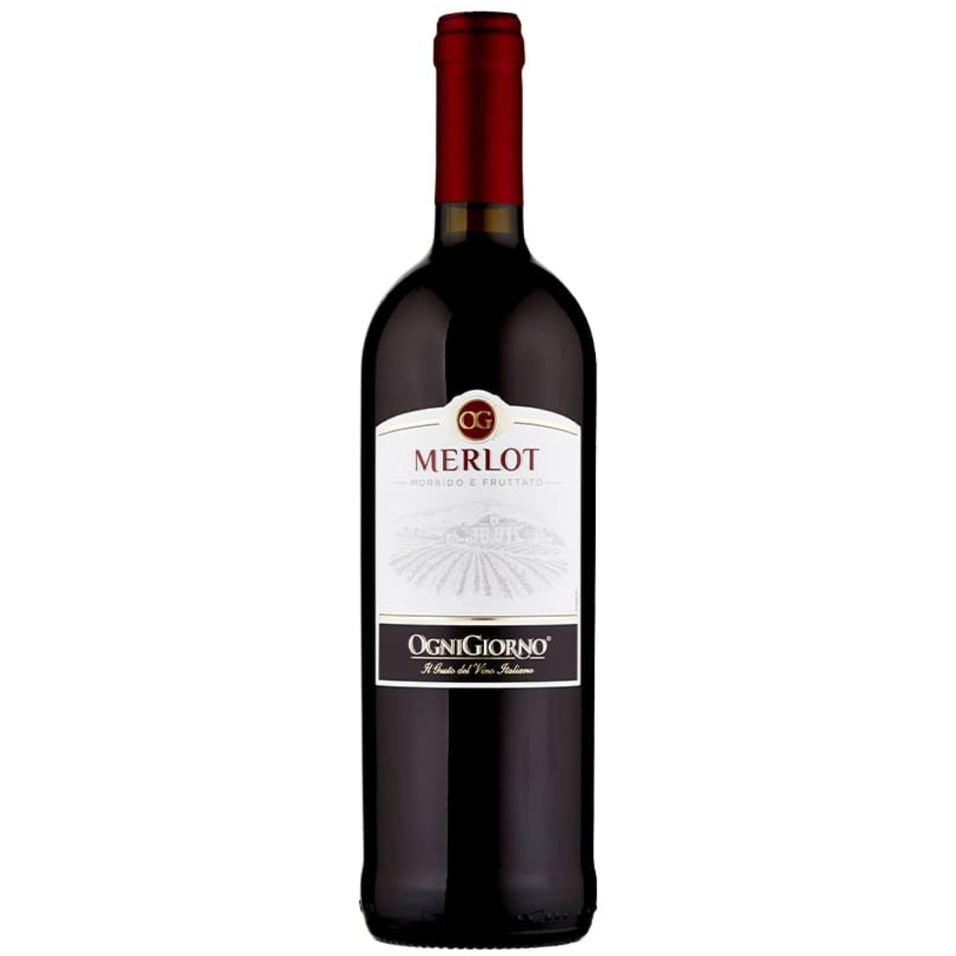 OgniGiorno Merlot to łagodne, czerwone wino półwytrawne o przyjemnej strukturze i owocowym charakterze, stworzone z klasycznego szczepu Merlot uprawianego we włoskich winnicach. Wino ma głęboką, rubinową barwę oraz aromaty dojrzałych wiśni, śliwek i delikatnych nut przypraw. W smaku jest miękkie, zbalansowane, o łagodnych taninach i umiarkowanej kwasowości, co czyni je niezwykle uniwersalnym wyborem na co dzień. Zawartość alkoholu 11,5% sprawia, że OgniGiorno Merlot jest lekkie i przyjemne w piciu, idealne zarówno do posiłku, jak i solo. Świetnie komponuje się z daniami z makaronem, pizzą, grillowanym mięsem oraz deską wędlin i serów. To wino czerwone półwytrawne będzie doskonałym wyborem dla osób poszukujących łagodnych, a jednocześnie wyrazistych smaków. Butelka 750 ml to odpowiednia porcja na wspólne chwile przy stole. OgniGiorno Merlot to codzienna przyjemność w włoskim stylu – prosto, lekko i z charakterem.