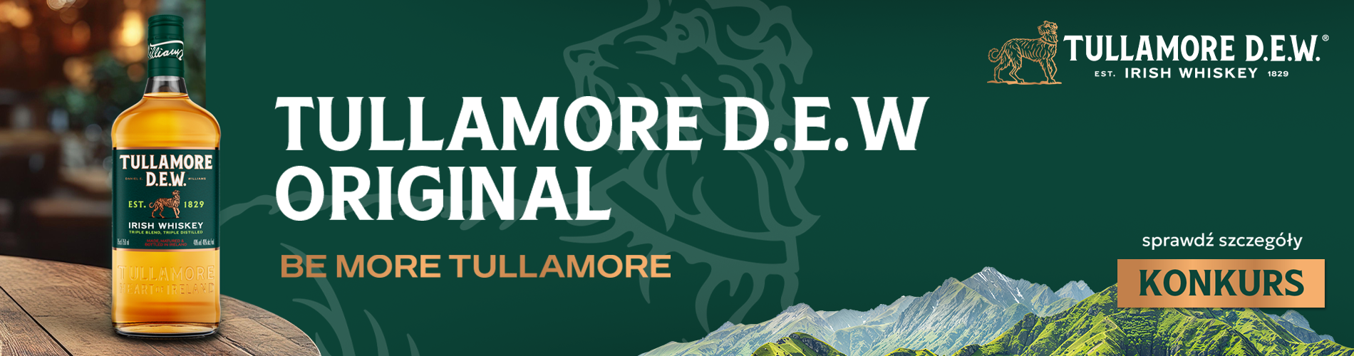 Tullamore D.E.W. Original to trzykrotnie destylowana irlandzka whiskey. Od 1829 roku jest produkowana według tej samej, niezmiennej receptury. Wyróżnia się wyjątkową łagodnością i unikalnym charakterem. ZAPACH - W aromacie wyczuwalny jest lekki i słodki zapach cytrusów oraz zielonego jabłka, który łączy się z nutą wanilii.SMAK - Whiskey charakteryzuje się owocowym i maślanym smakiem, wzbogaconym nutami rodzynek i słodkością wanilii.FINISZ - Posmak jest średnio długi, a w nim wyczuwalne nuty marcepana i wanilii.