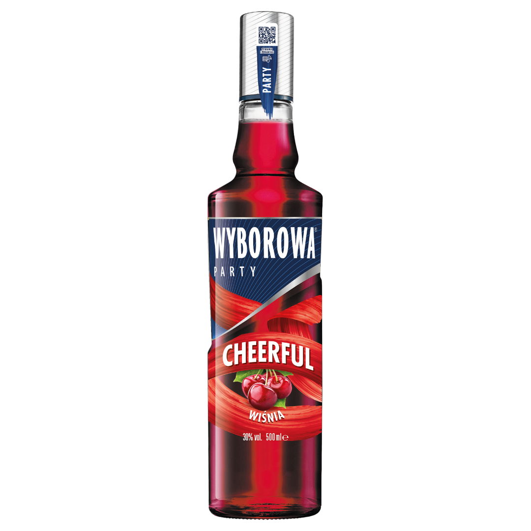 Wyborowa Cheerful (Wiśnia) to likier o wyjątkowym smaku, gdzie kusząca wiśnia łączy się z doskonałym alkoholem, nadając trunkowi niepowtarzalną słodycz i intensywność